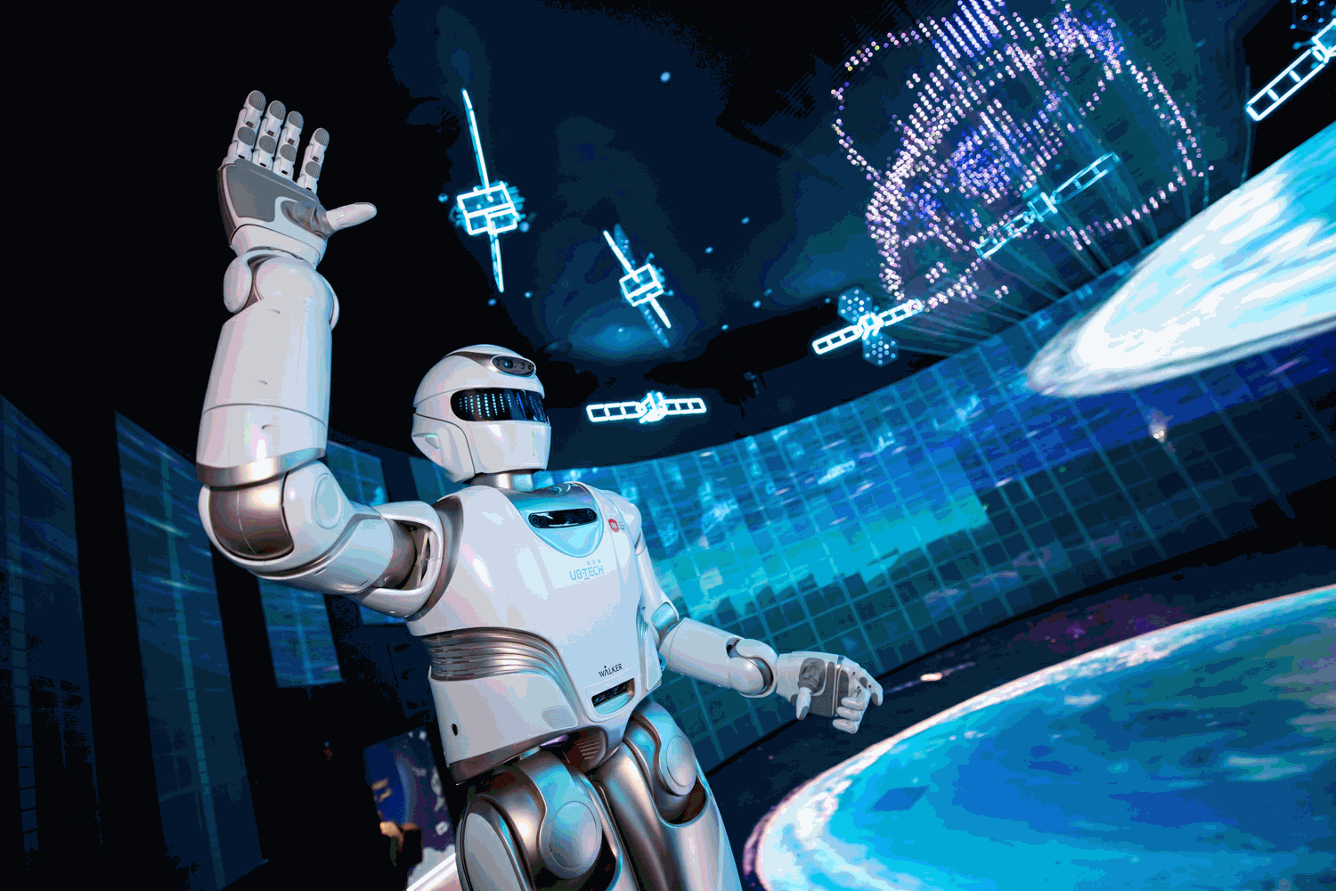 开展第一天,,,,,,,航天科技、智慧都会、未来看法汽车、智能机械人等展项吸引了大批游客驻足。。。。。